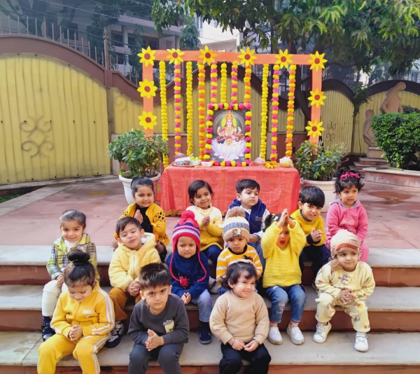 Childsen celebrated Basant Panchami with great Panch enthusiam eaheyoy Came dressed in yellow attise and offered prayees to Goddess Saraswati.